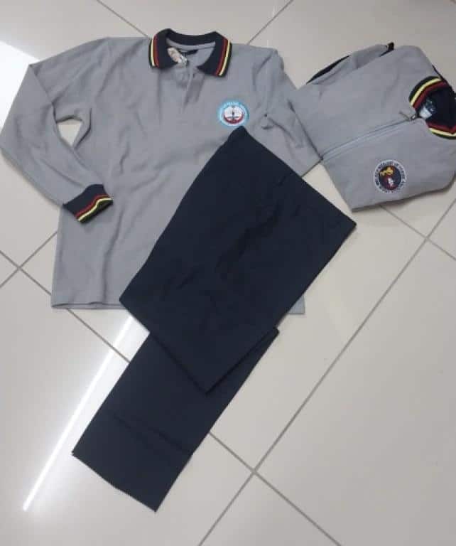 Üst Giyim: 1- Doğal ve sağlıklı kumaşlardan yapılmış uzun kollu gri renkli üzerinde okul logosu baskılı olacak şekilde polo yaka sweatshirt. (yaka detayı lacivert zemin üzerinde sarı- kırmızı çizgiler)