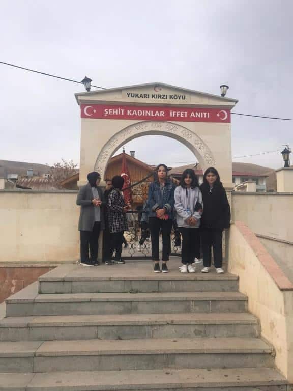 Cumhuriyetimizin yüzüncü kuruluş yıldönümü etkinlikleri kapsamında Aşağı Kırzı Köyünde bulunan kurtuluş savaşı yıllarında milletimize karşı girişilen Ermeni mezaliminin bölgemizde ki vahşetini konu edinen "Şehit Kadınlar İffet Anıtı'nı" ziyaret ederek öğrencilerimiz bilgilendirildi.